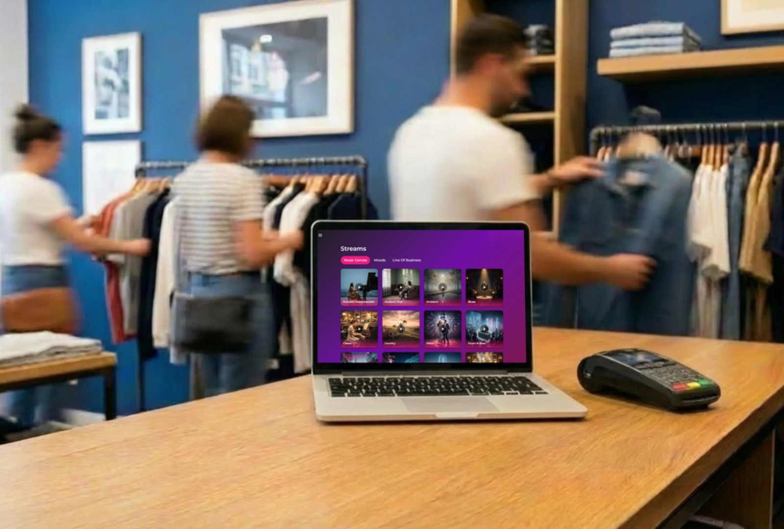 Palvelusta löytyy valmiita musiikkilistoja ja toimialakohtaisia kokonaisuuksia.