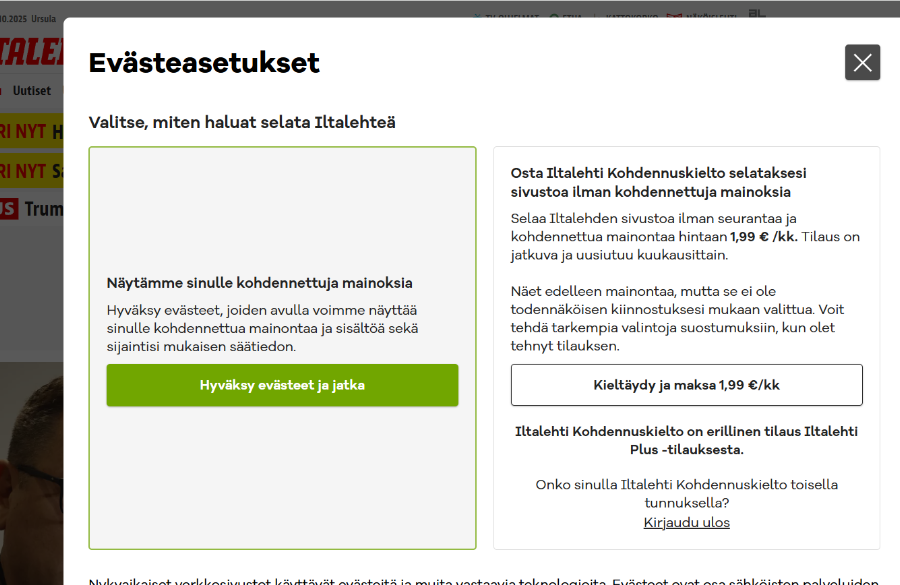 Iltalehti pakottaa lukijoitaan hyväksymään kohdennetun mainonnan